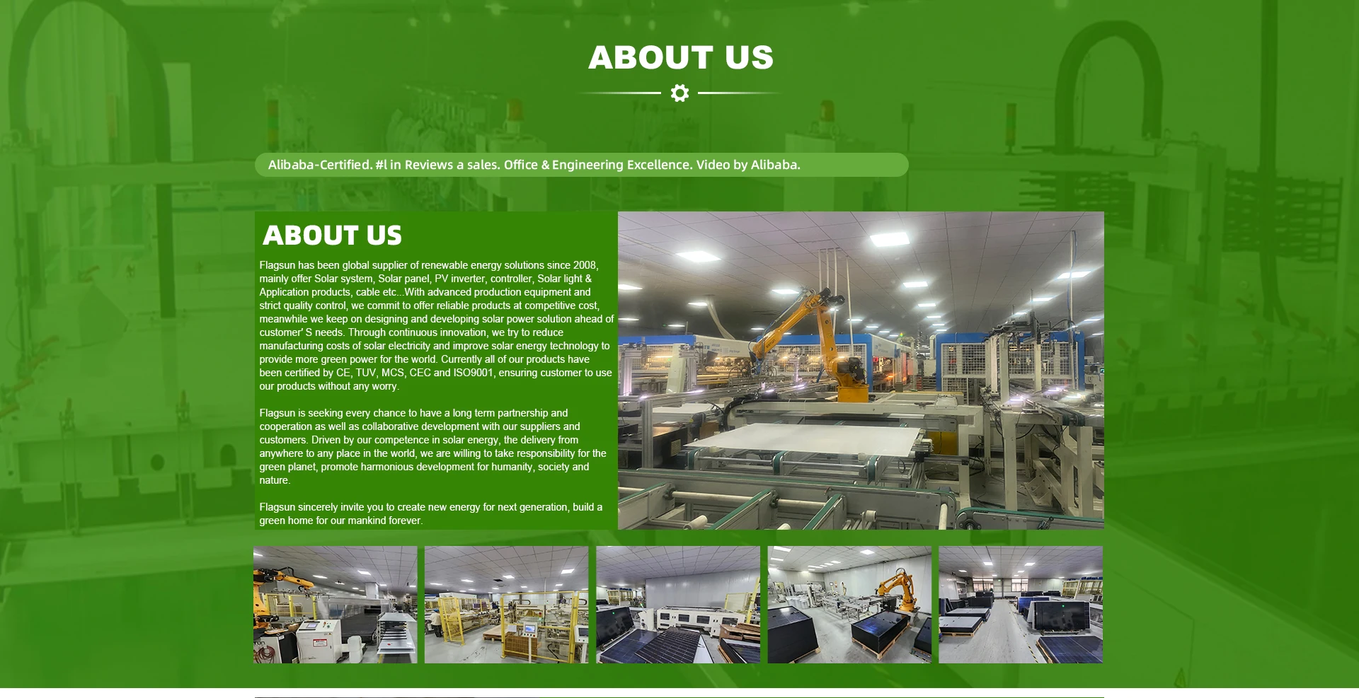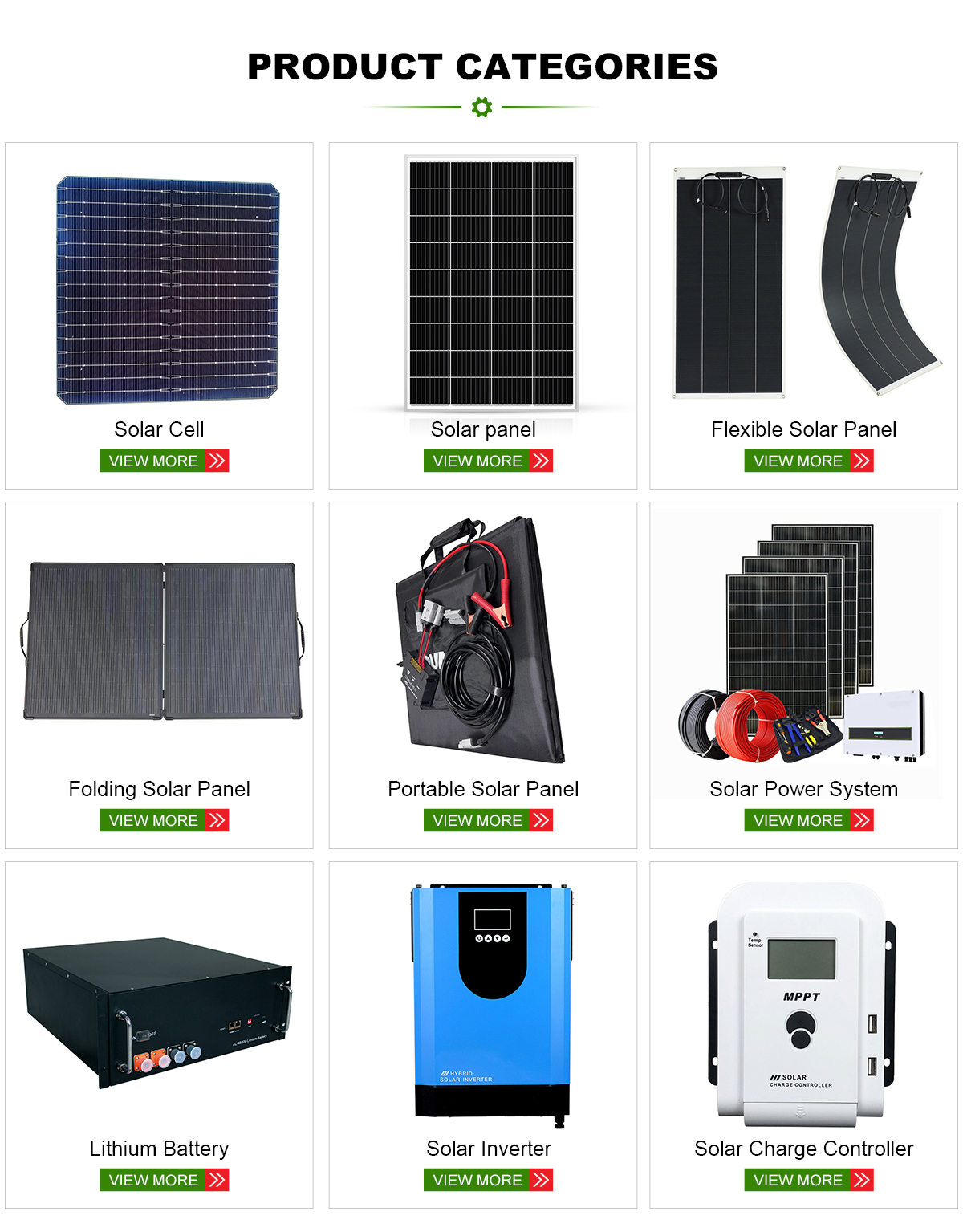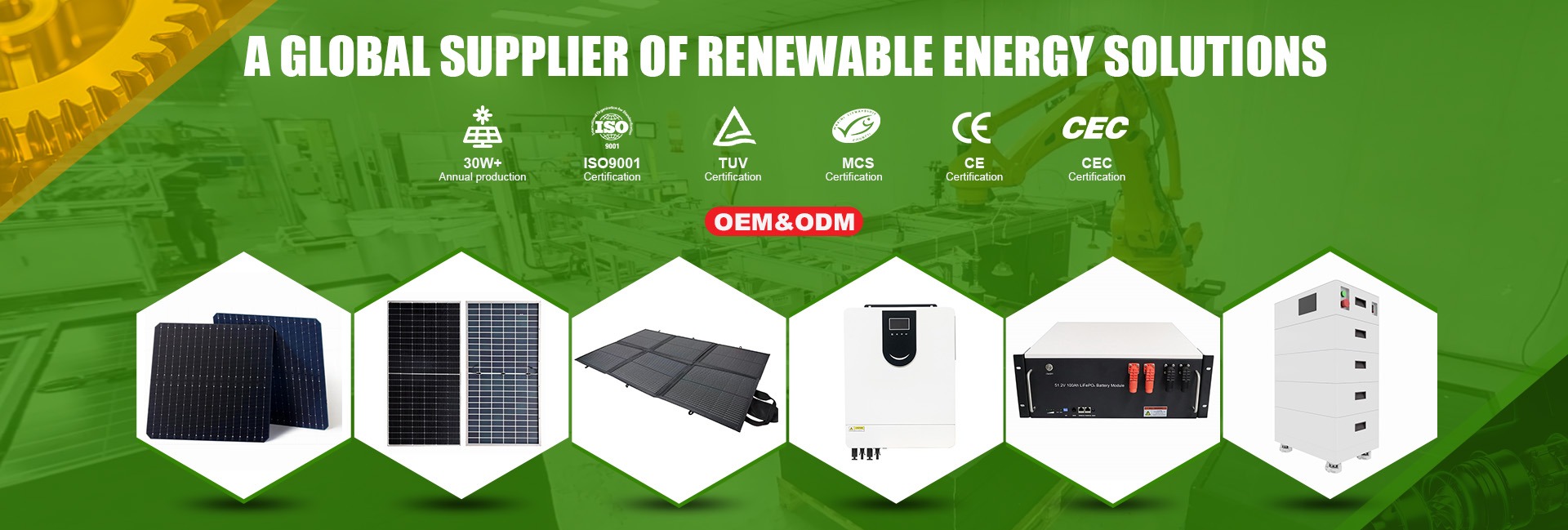 ผลิตภัณฑ์หลัก:แผงโซลาร์เซลล์, แบตเตอรี่ลิเธียม, ระบบพลังงานแสงอาทิตย์, อินเวอร์เตอร์พลังงานแสงอาทิตย์, ตัวควบคุมพลังงานแสงอาทิตย์